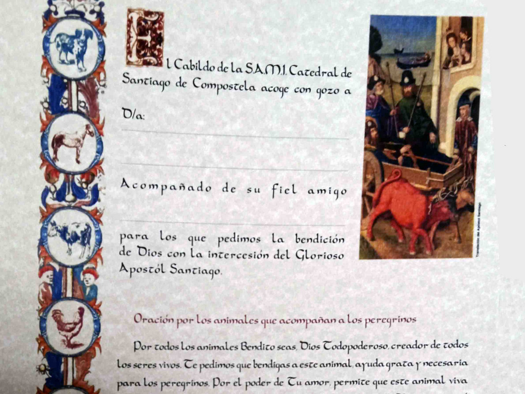 In Santiago de Compostela gibt es dann die Bescheinigung für den Hund genauso wie für den Mensch: Im örtlichen Pilgerbüro nahe der Kathedrale.