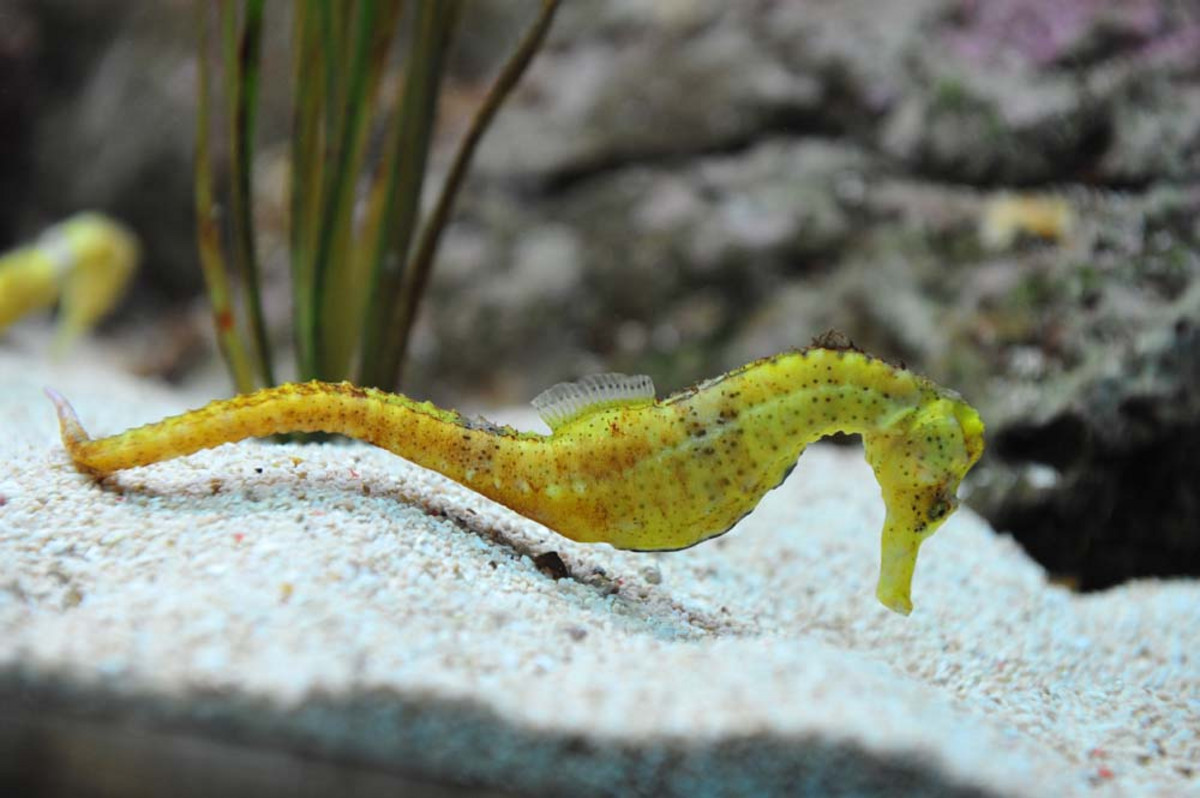 Und weil der ziemlich groß ist, fragt die kleine Krake nun alle anderen um Rat, darunter den Kofferfisch und die Seepferdchen, die in echt so aussehen: