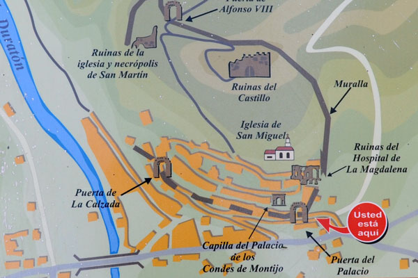 Typisch sind: sanfte Hügel, ebene Felder, der weite Horizont. Reisende sollten auch Orte nördlich und südlich des Flusses besuchen. Castillejo de Robledo, Peñaranda de Duero und Baños de Valdearados zum Beispiel lohnen wegen der Sehenswürdigkeiten. Auch Aranda de Duero und die alte Burg Peñafiel auf keinen Fall auslassen.