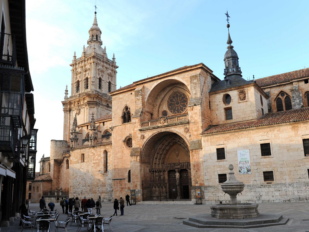 Die Arbeiten an dem Gotteshaus begannen im 12. Jahrhundert. Dieses Gotteshaus hat einen typischen Kreuzgrundriss und figurengeschmückten Eingängen. Und nicht nur Architekten haben die Kathedrale beeinfluss. Im Krieg mit Frankreich bekam Santa María einige Kugeln ab, deren Einschüsse heute noch sichtbar sind.
