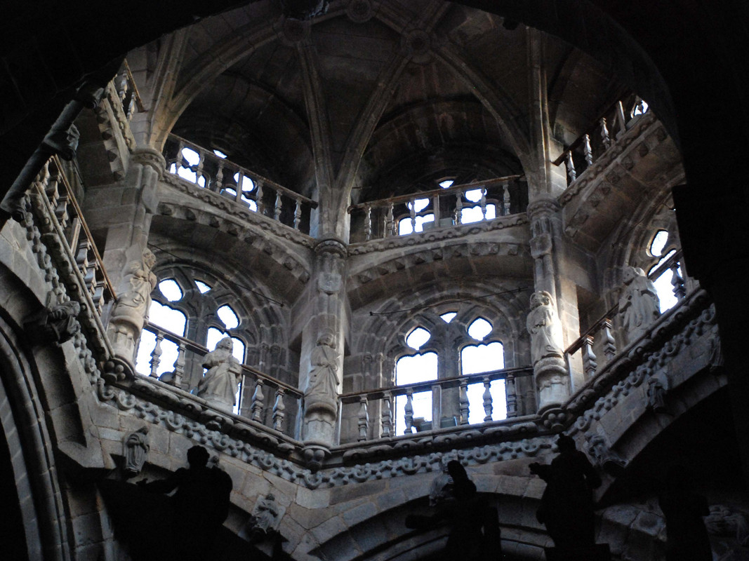 Beachtlich ist vor allem das romanische Eingangstor Pórtico de la Gloria hinter der Hauptfassade, gestaltet von dem Bildhauer Meister Mateo.