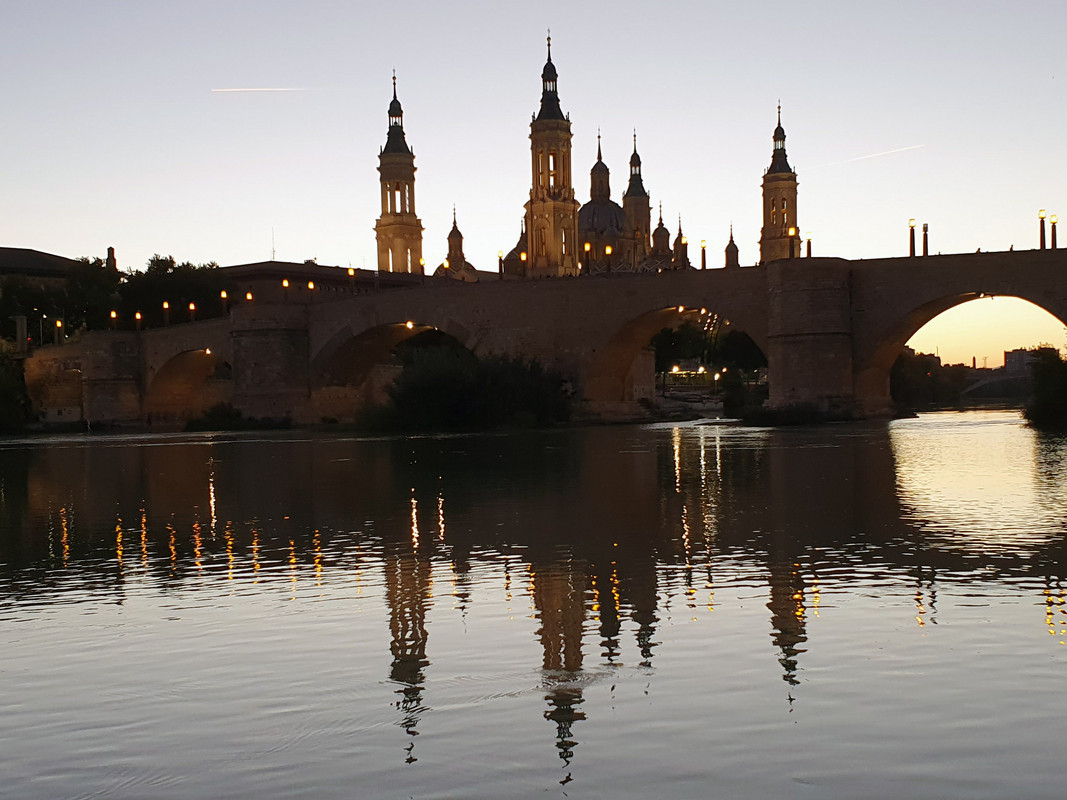 Wie Lleida hat auch Zaragoza, die Hauptstadt der Region Aragón, zwei Kathedralen. Im Bild zu sehen ist die Basílica El Pilar, benannt nach der Schutzheiligen der Stadt mit ihren markant schlanken Türmen.