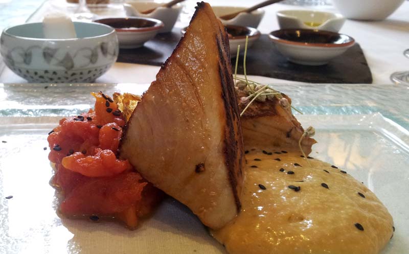 Meine Tochter mag Eis. Doch das Eis von Iñaki (Nacho) heißt Gin Tonic, und so macht sich die Kleine lieber über das knusprige Brot her. Zuvor gab es Jakobsmuscheln, Thunfisch auf den Punkt gebraten, Salze mit Olivenöl aus aller Welt und eine Schwertmuschel vom Feinsten: