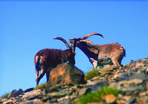 Weniger gefährdet ist der Iberiensteinbock Cabra Montés, von dem sich der inzwischen ausgestorbene Pyrenäensteinbock genetisch zwar unterschieden hat, äußerlich aber kaum: Das Fell war etwas dunkler und die Hörner der Männchen größer. Das letzte Weibchen dieser Art verstarb im Januar 2000.