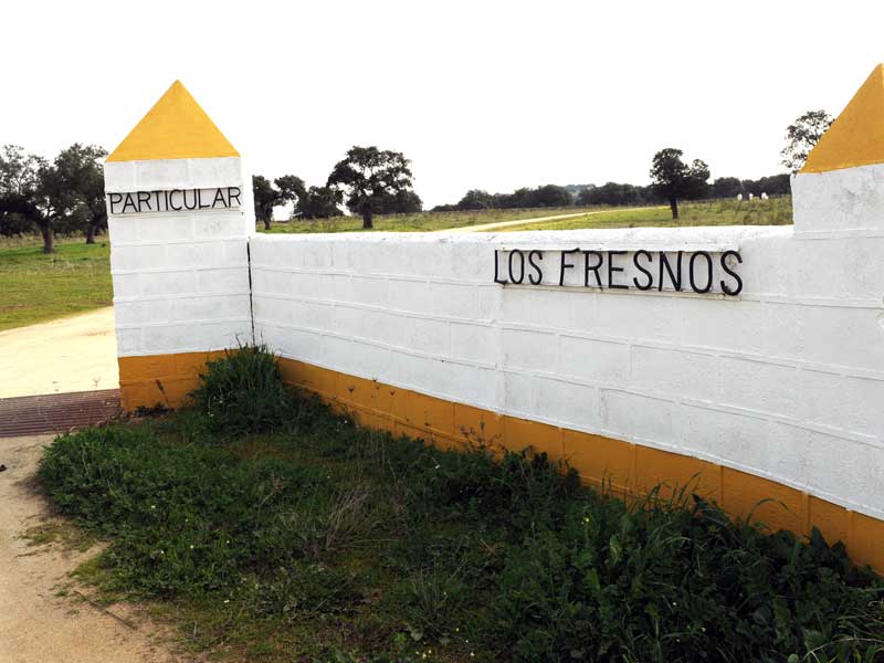 Wir sitzen im vierradangetriebenen Range Rover. Soeben sind wir in eine der berühmtesten Fincas der Provinz Badajoz hineingefahren. Störche kreisen über uns. Rinder gucken uns an, Kühe grasen auf den Weiden.