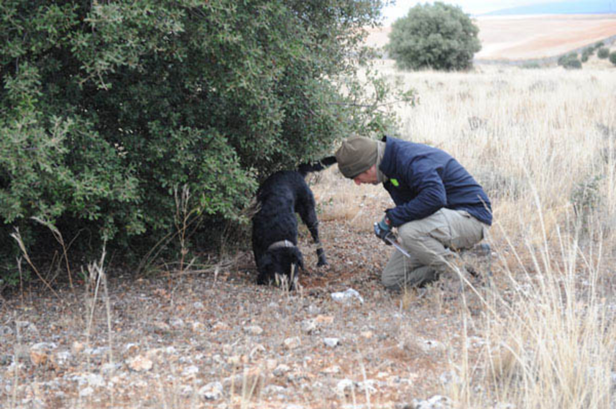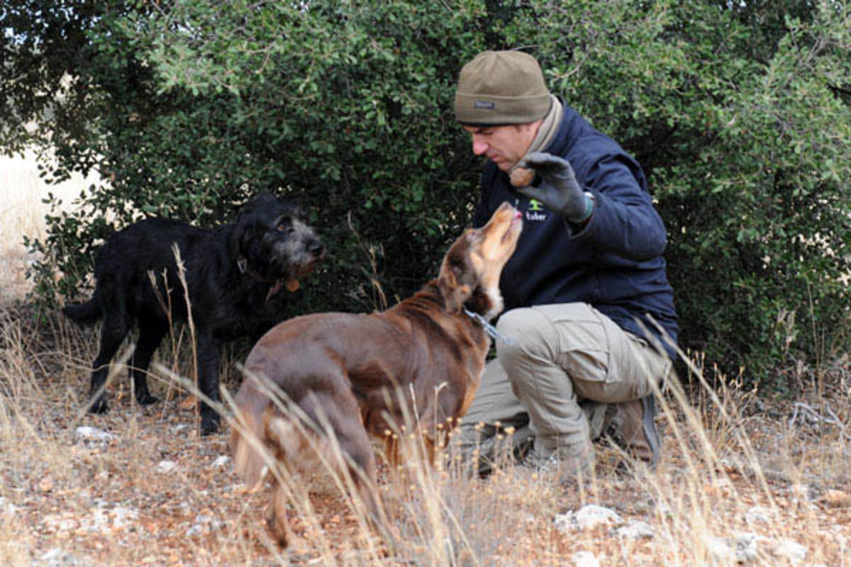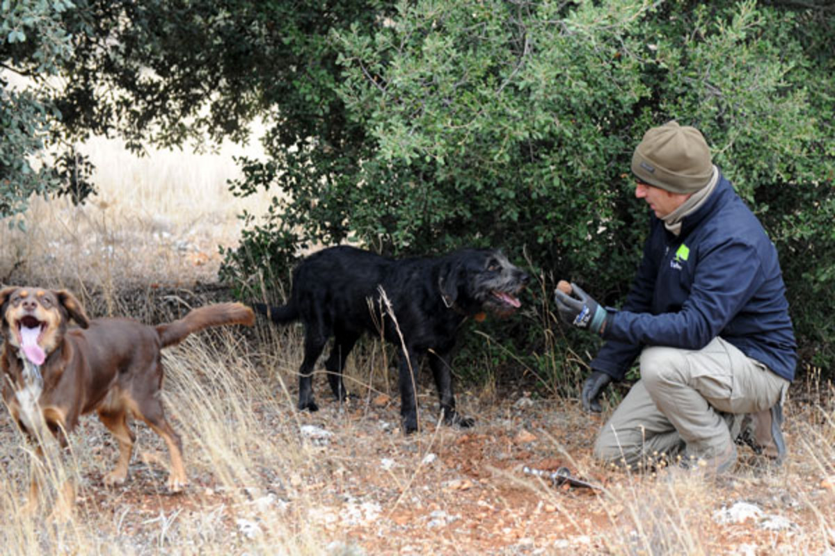Txoko und Patxi toben verspielt zwischen den Steineichen in der Provinz Soria. Zwischendurch nehmen sie den Geruch von Trüffeln auf und führen ihre Herrchen zur Fundstelle. Solche Trüffelhunde gehören zu den wertvollsten in Spanien. Denn ein einziges Kilo des wertvollen Pilzes Trufa Negra bringt den Besitzern mindestens 700 Euro ein, manchmal auch bis zu 1000 Euro.