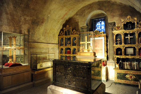 Den Schatzraum schützen seither dicke Eisengitter. Zumal Oviedo als Start des Camino Primitivo nach Santiago de Compostela auch andere Schätze in seiner Kathedrale birgt, darunter das angebliche Grabtuch von Jesus.